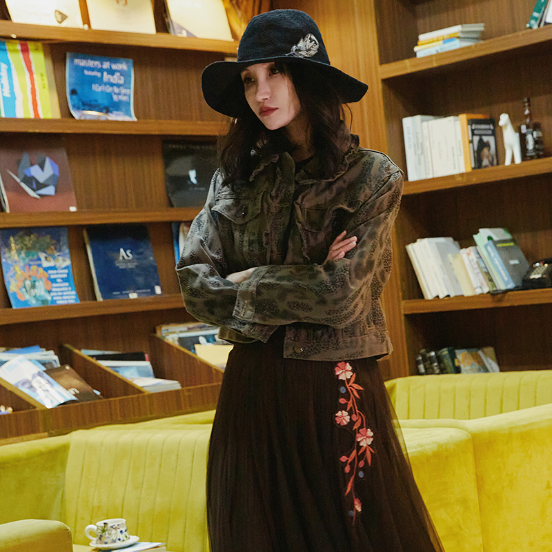 牛仔外套女国风夹克上衣51EO0585 迷彩刺绣短款 裂帛2025新款 春季