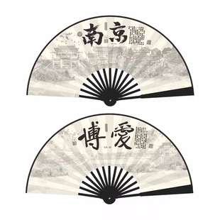 10寸南京景点折扇夫子庙总统府天下为公水墨国风折扇绢布景区扇子