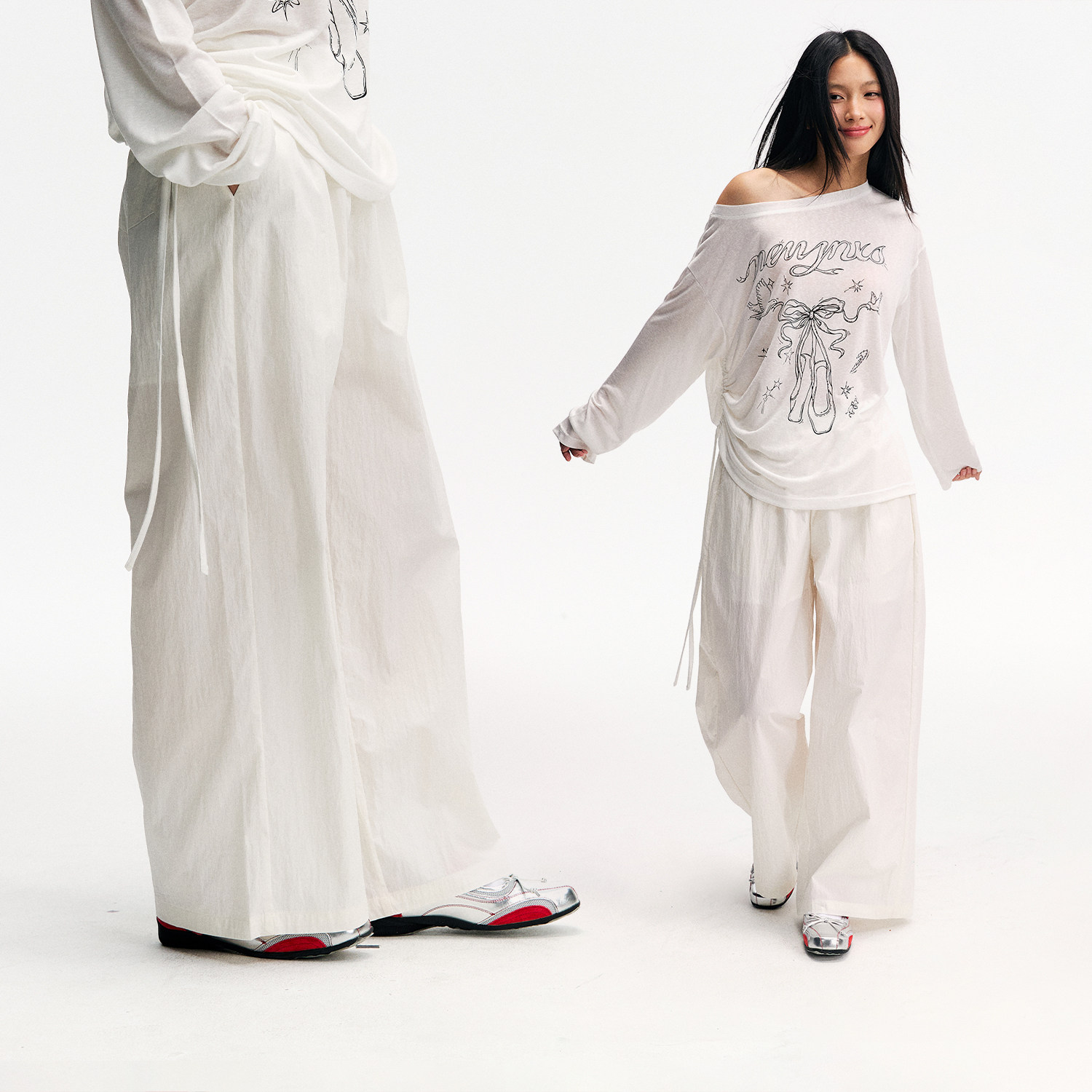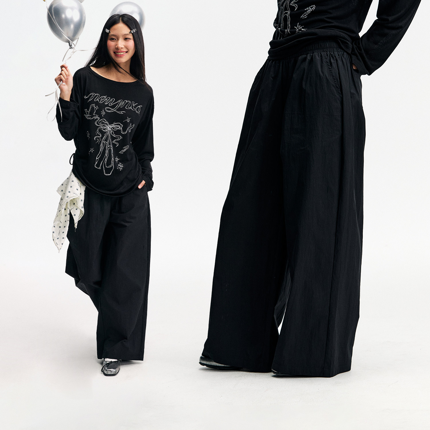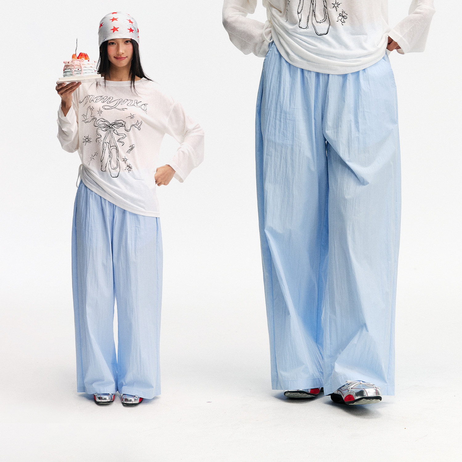 江南先生NewJNXS柔软舒适肌理感休闲纯色梭织裤 子女夏 宽松百搭裤