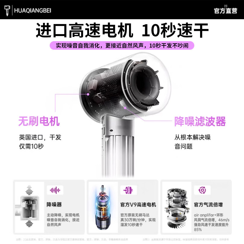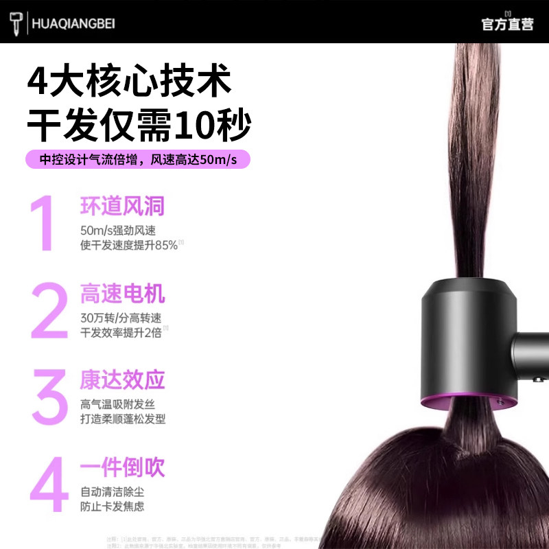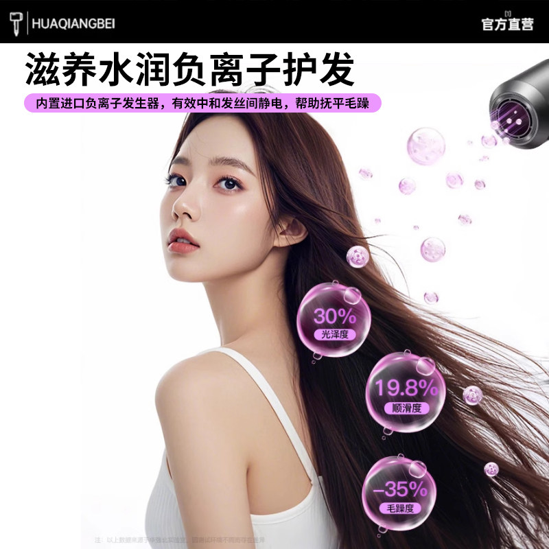 高速吹风机家用负离子护发大风力中空无叶速干降噪电吹风筒华强北