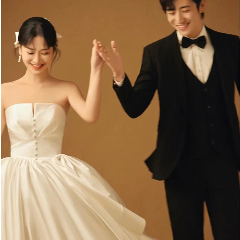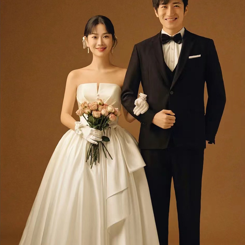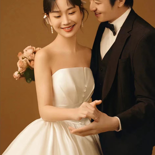 新娘缎面小个子领证礼服出门纱订婚女 夏季 法式 鱼尾轻婚纱2025新款