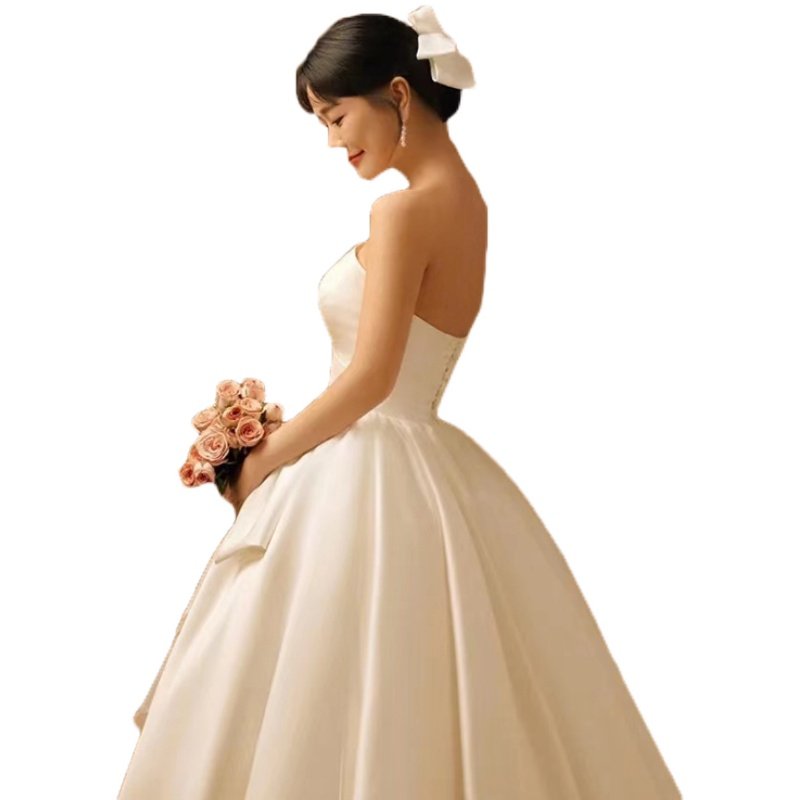 大码 胖MM新娘加肥加大宴会晚礼服森系旅拍婚纱 缎面轻婚纱2024新款