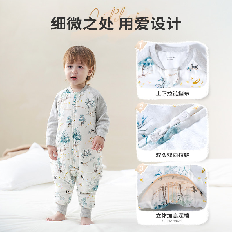 cutelife轻暖竹棉婴儿睡袋儿童宝宝秋冬款 睡袋夹棉防踢被加厚
