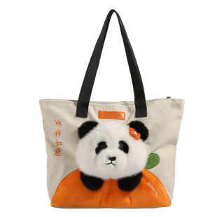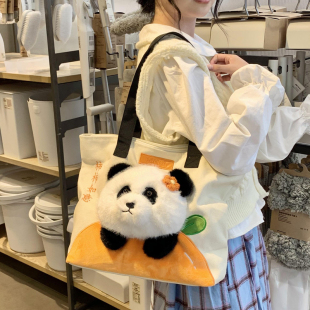柿柿如意毛绒玩偶大熊猫包包帆布包单肩包大容量托特包通勤斜挎包