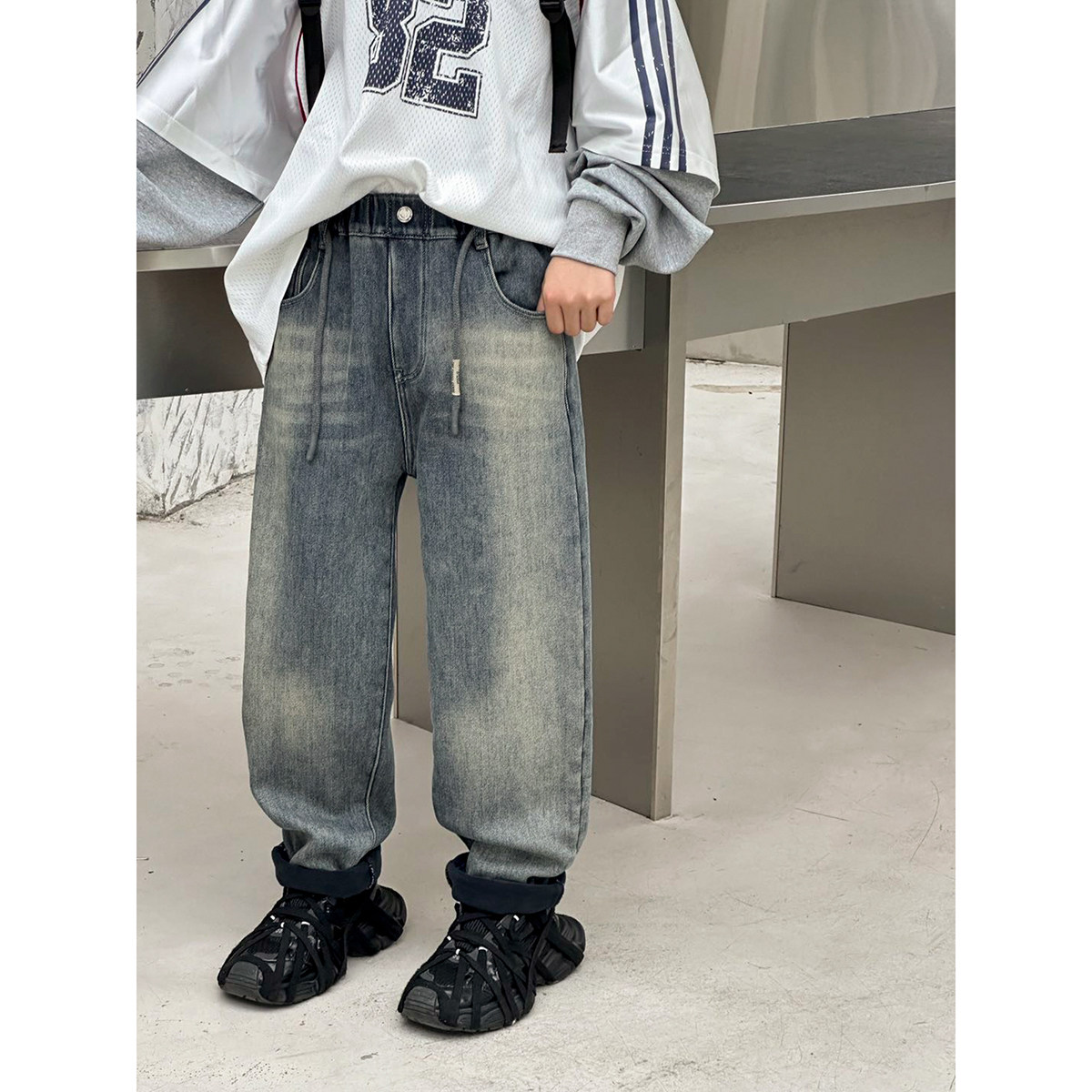 2025新款 大童男孩直筒长裤 冬装 子加绒秋冬款 春秋 儿童裤 男童牛仔裤