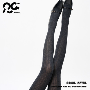 袜 打底裤 Rougo灰色miu系坑条棉直角跟连裤 袜竖条纹丝袜女春秋款