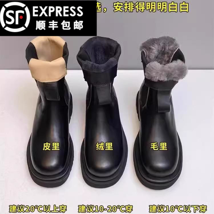 加绒保暖短靴B7D1DDD4 靴厚底羊皮切尔西靴冬季 百丽女靴子新款 时装