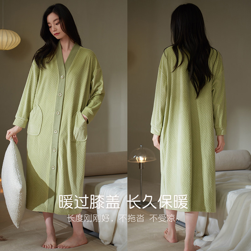 轩靓海岛绒睡裙女冬季 睡袍保暖浴袍家居服 加绒加厚珊瑚绒睡衣冬款
