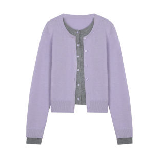 女慵懒毛衣羊毛冬 开衫 BLUEerror 时髦知识分子miu系假两件针织衫