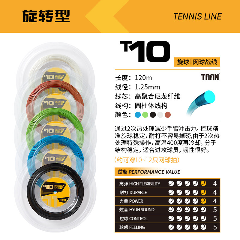 泰昂taan网球线120米高弹炫音耐打聚酯网球拍线打球音T10大盘线
