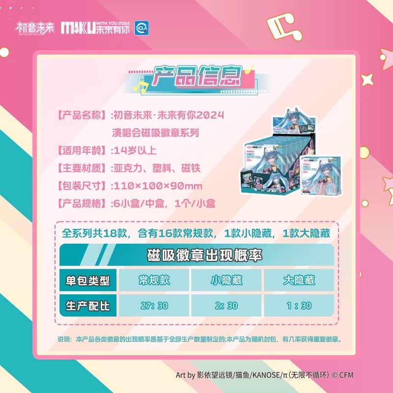 KKV正品 卡游初音未来2024演唱会盲抽磁吸徽章Miku周边谷子小摆件