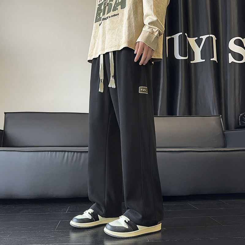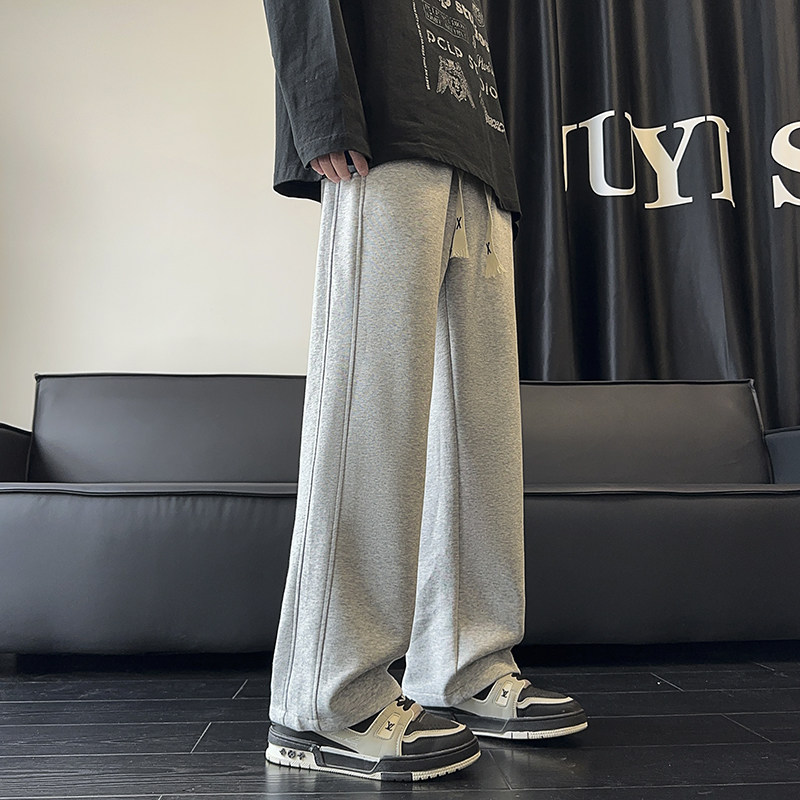 子青少年男生休闲长裤 2025秋冬宽松直筒大童阔腿裤 男款 加绒运动裤