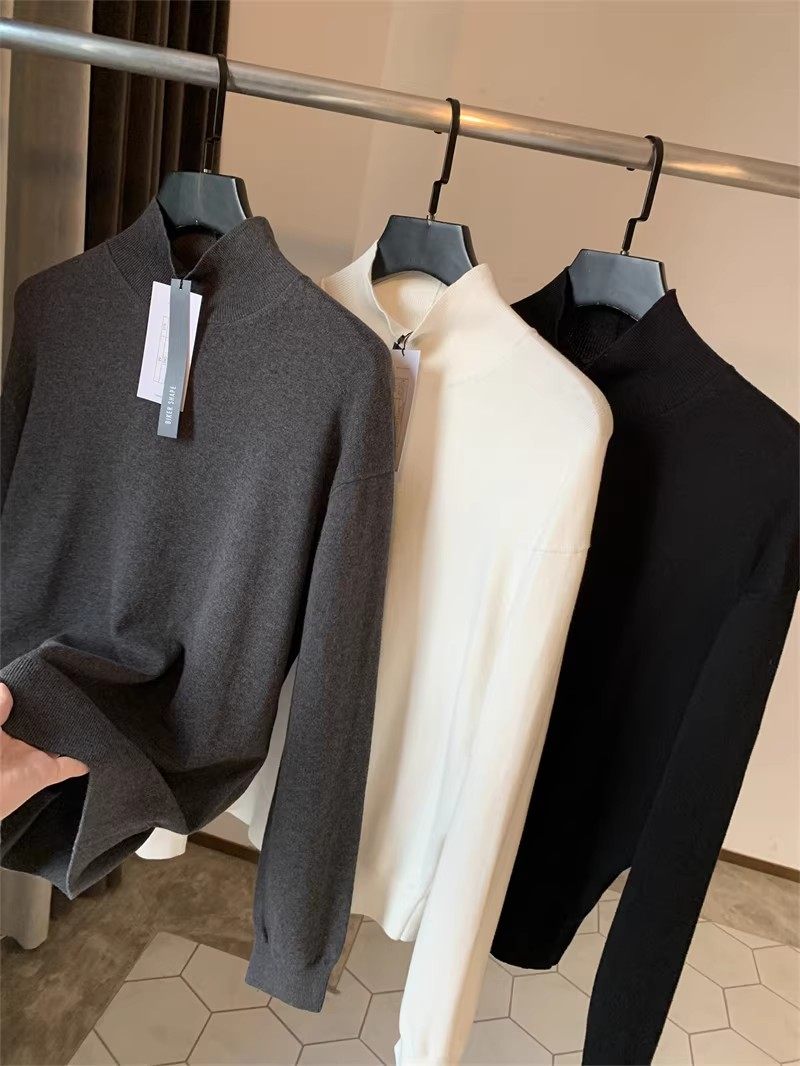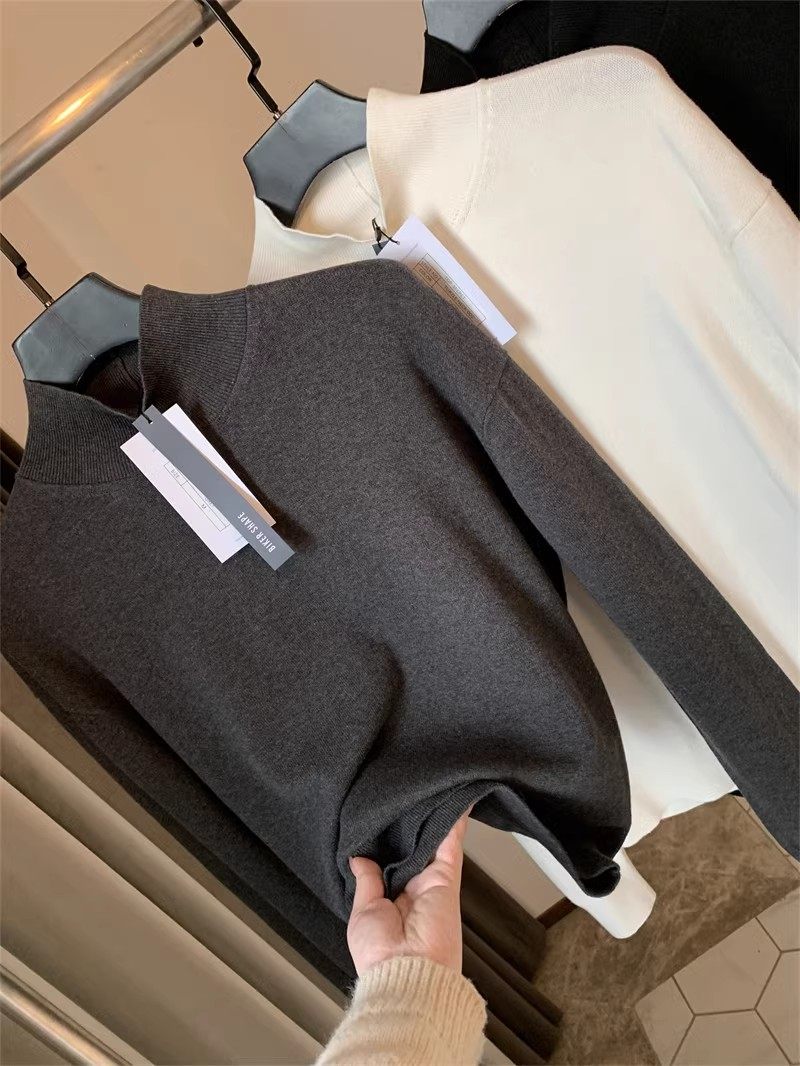 毛衣 半高领软糯宽松套头针织打底衫 双股加厚100%纯羊毛衫 男秋冬季