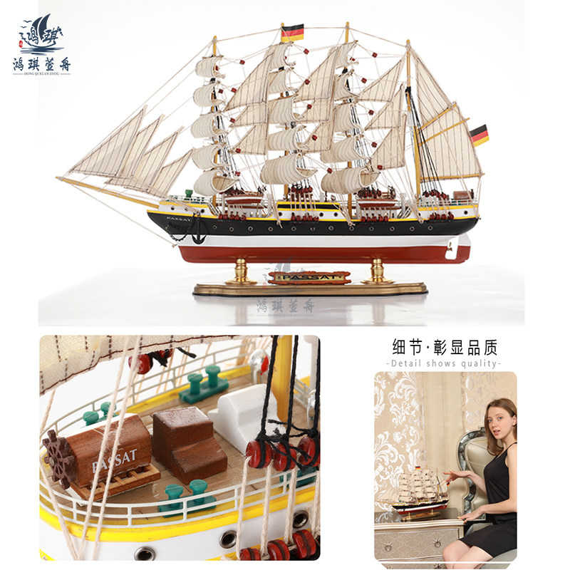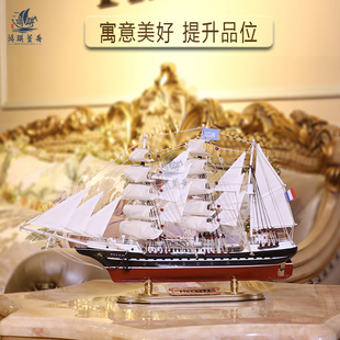 52CM一帆风顺帆船模型摆件北欧风精致实木卧室客厅阳台书柜装 饰
