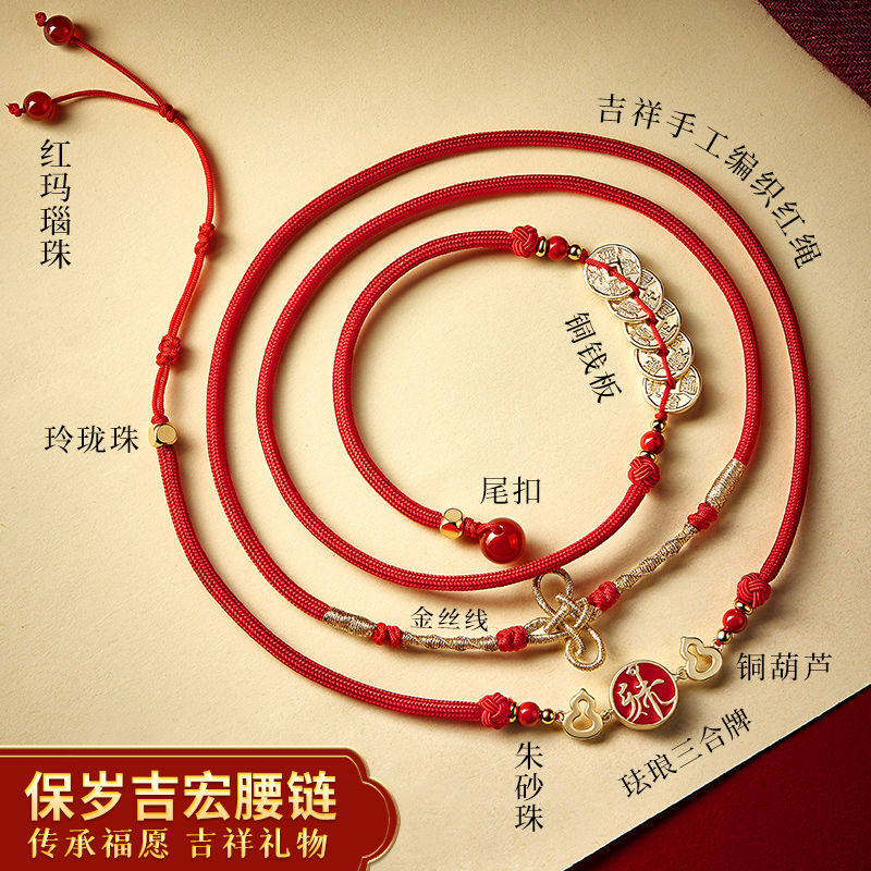 易明开居三合护禄红腰链2025蛇年生肖三合六合本命年保岁腰带男女