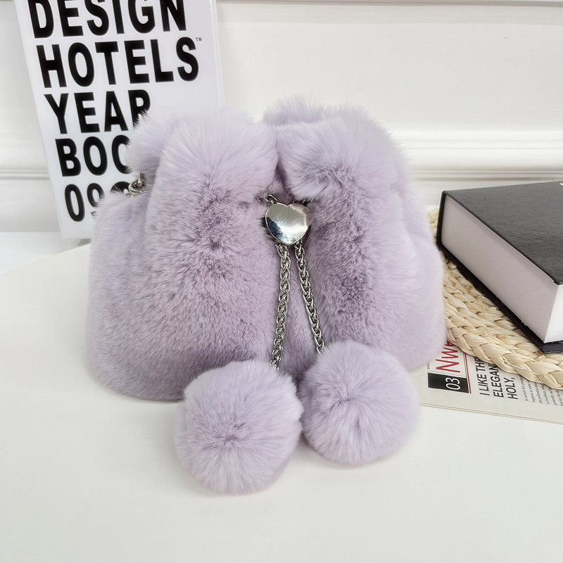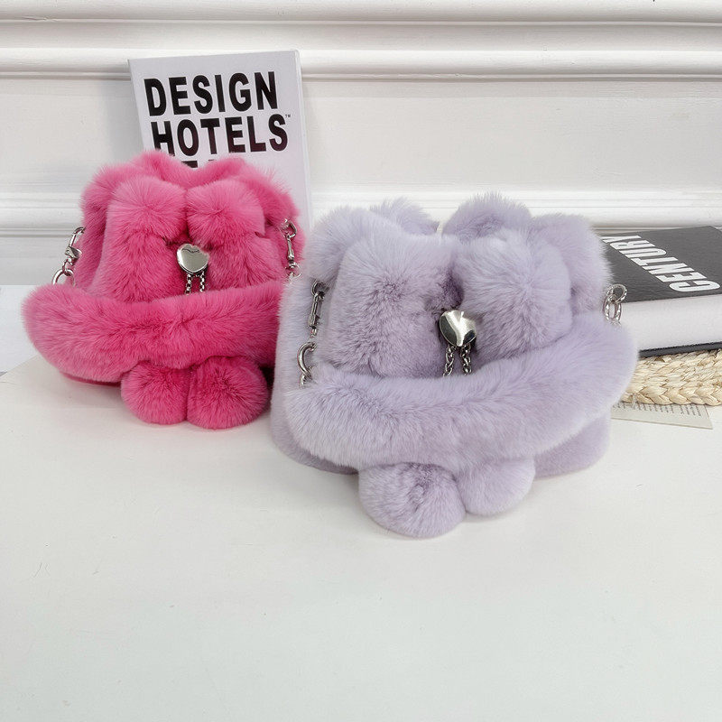 獭兔毛水桶包2024新款 皮草包秋冬百搭手提单肩斜挎可爱毛毛包