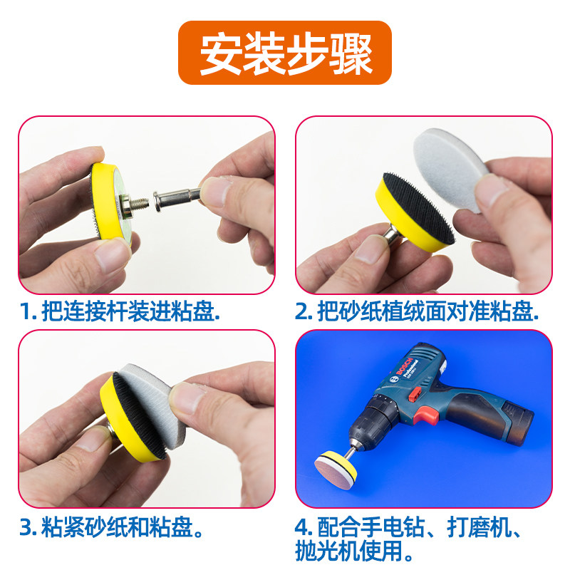 植绒海绵砂纸打磨头抛光打磨神器抛光海绵缓冲抛光头干湿两用25mm