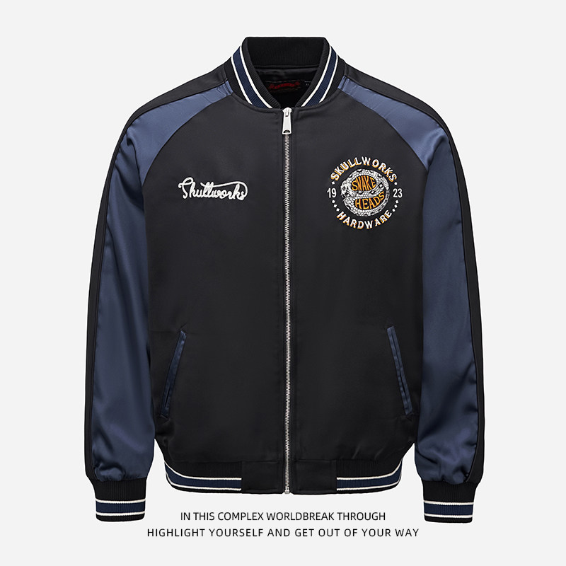复古撞色棒球服外套毛巾绣新款 美式 飞行员夹克 明星苏新皓同款