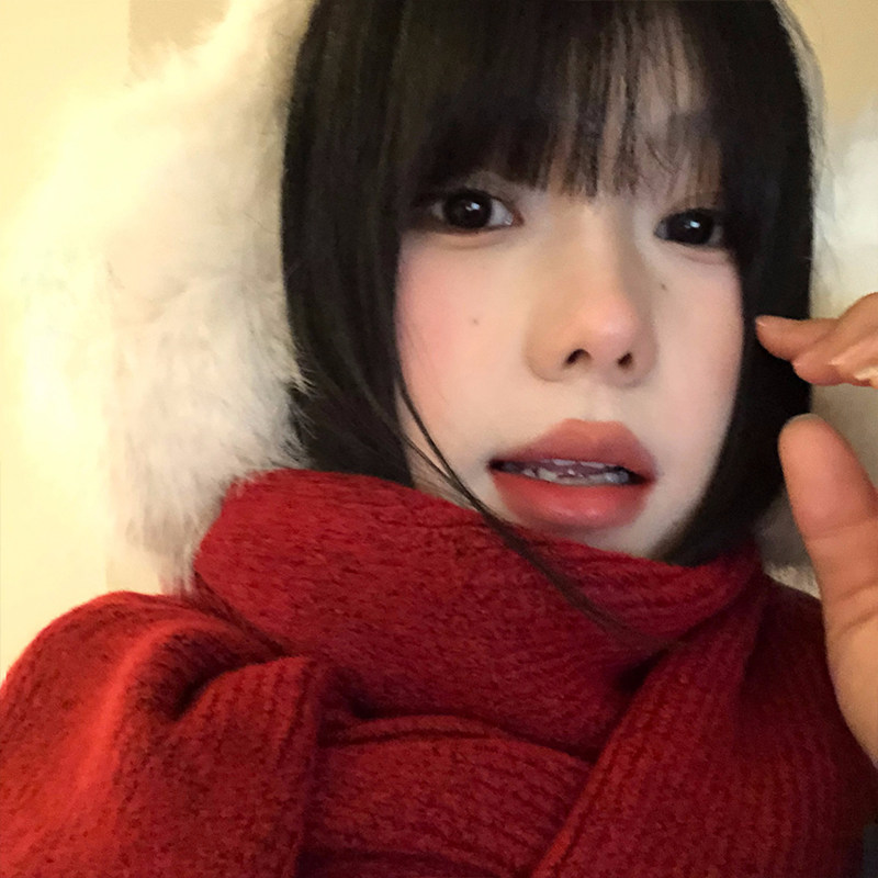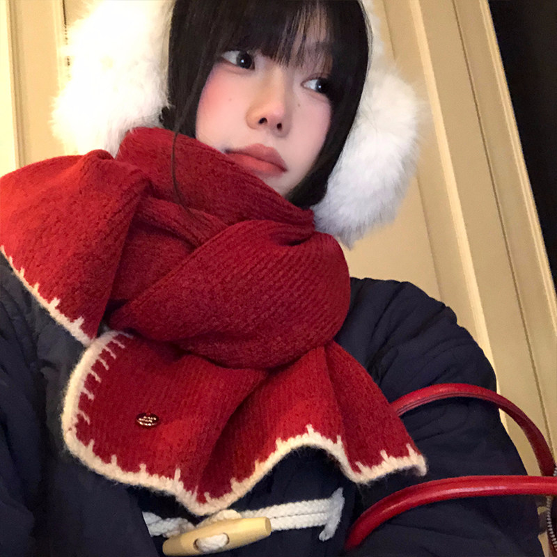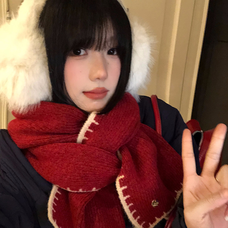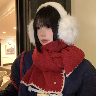 高级感保暖防寒氛围感围脖 冬季 新年红色锁边针织围巾女款 2025新款