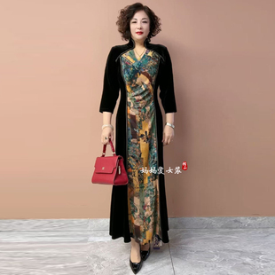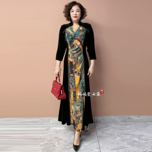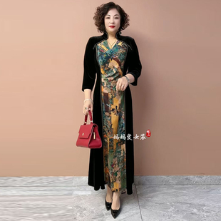 气质大码 改良旗袍连衣裙收腰显瘦中老年妈妈款 长裙子 新款 2025春装