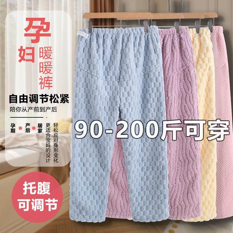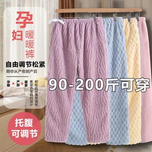 珊瑚绒孕妇怀孕加绒加厚高腰托腹家居裤 200斤月子睡裤 大码 秋冬季