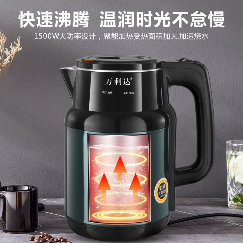 美 电热水壶家用不锈钢电热保温一体烧水壶自动大容量开水壶华凌