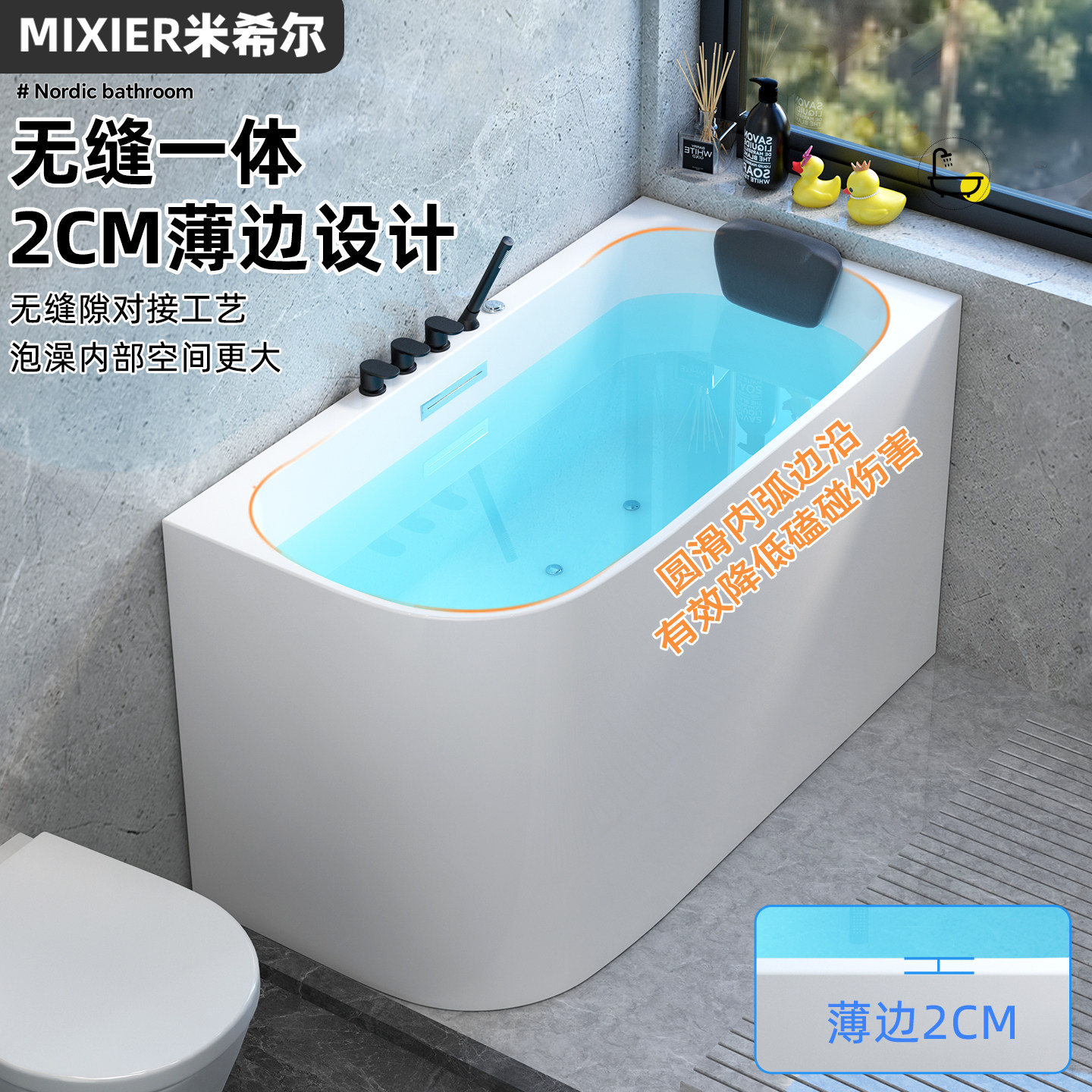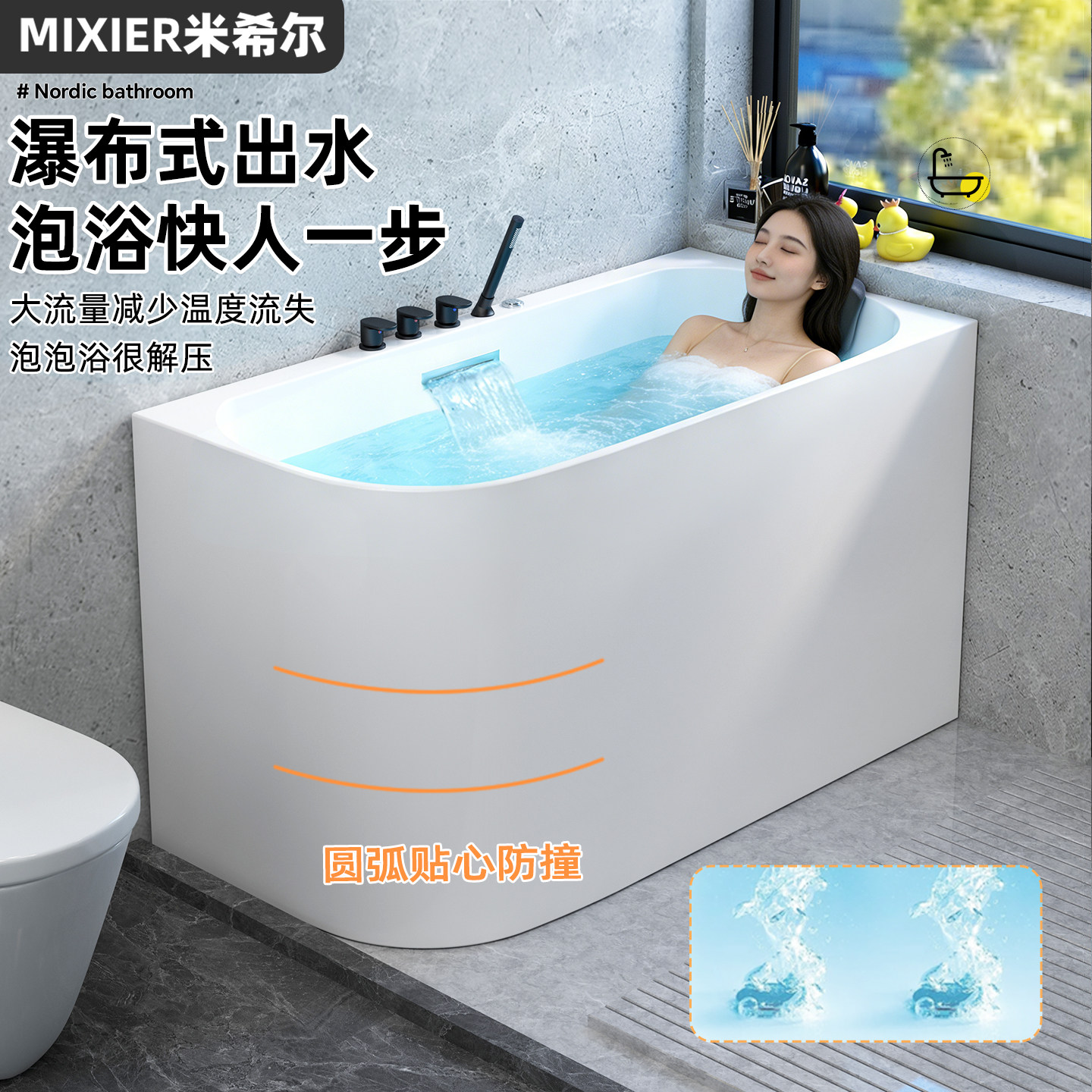 迷你小浴缸小户型家用成人独立日式 泡泡浴 深泡浴盆亚克力移动坐式