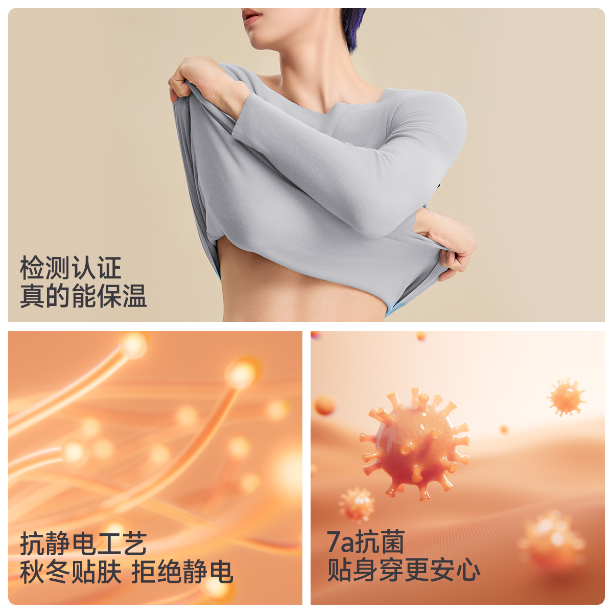 套装 木与禾冬季 秋衣秋裤 加绒加厚圆领7A抗菌打底衫 保暖内衣女男士