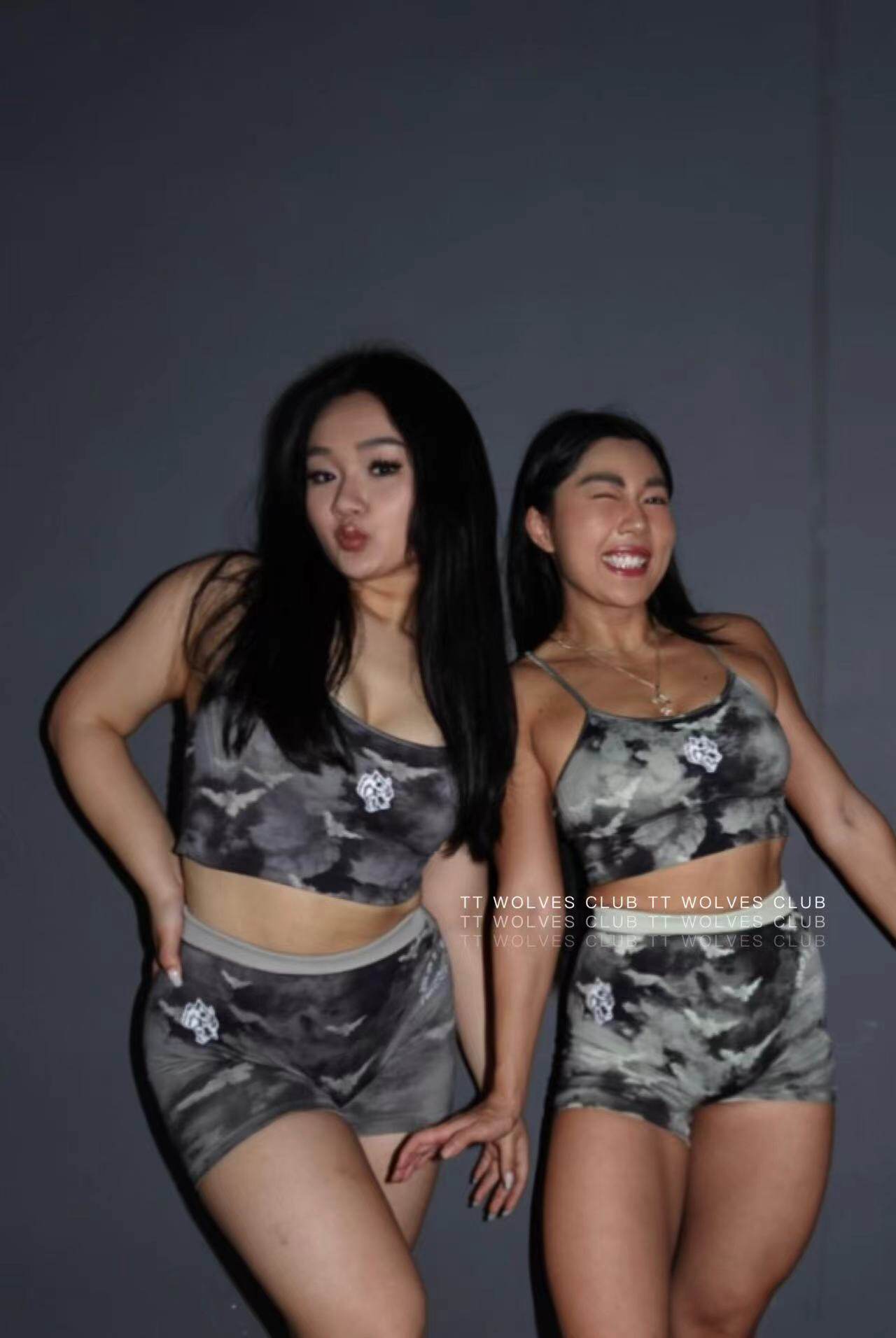 超好看 A46 TTWOLVES狼头蝴蝶水墨扎染女士无缝针织健身运动套装