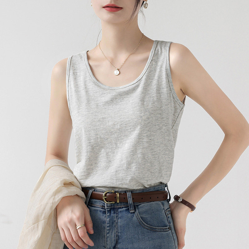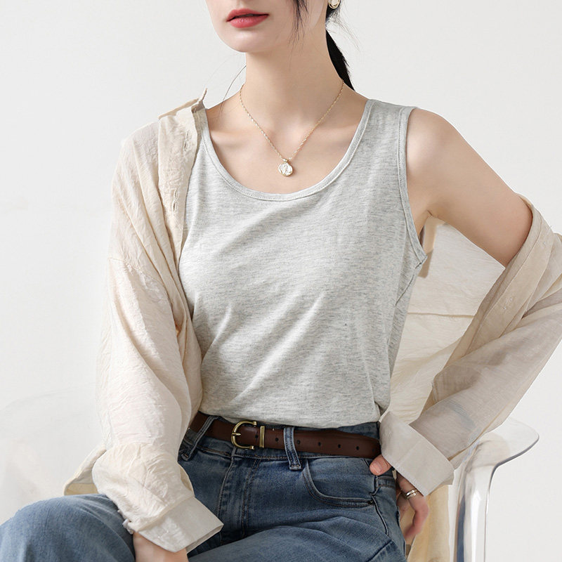 上衣 遮肉显瘦内搭无袖 竹节棉背心吊带女夏外穿2026新款 宽松打底衫