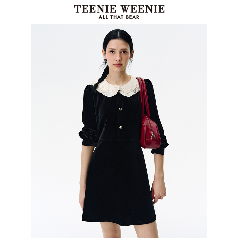 赠斜挎包 舒适泡泡袖 TeenieWeenie小熊法式 秋冬季 裙 连衣裙女装