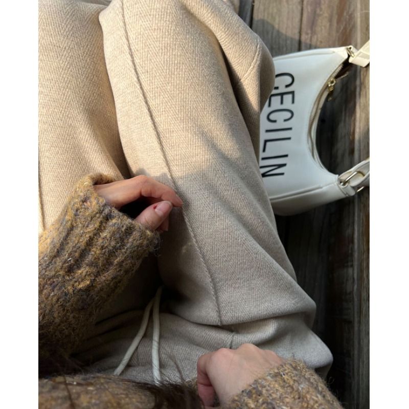 女秋冬裤 加绒直筒裤 子新款 休闲人字纹窄版 女 大码 阔腿裤 灰色毛呢裤