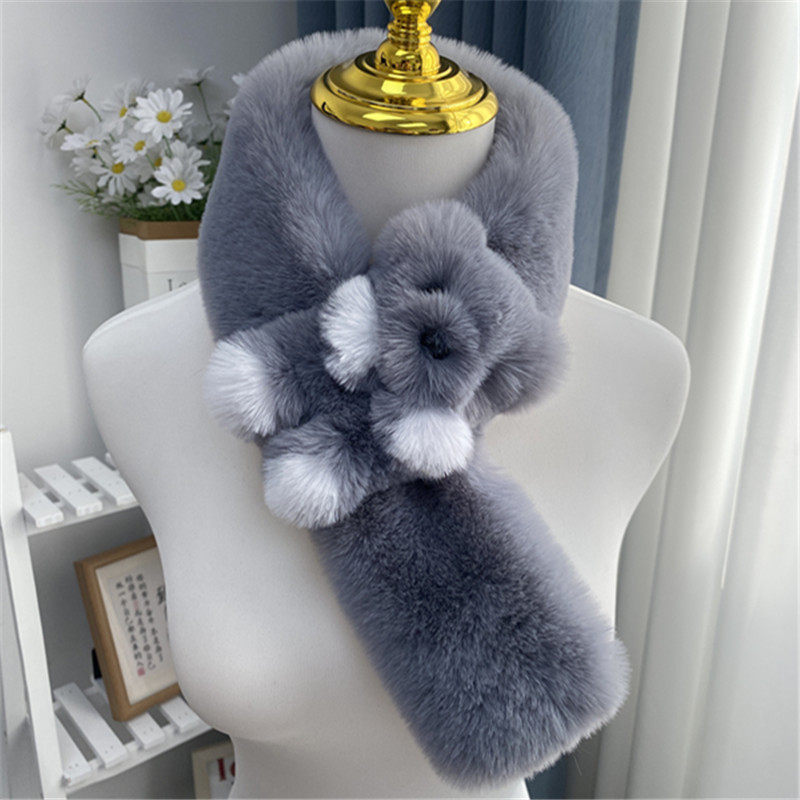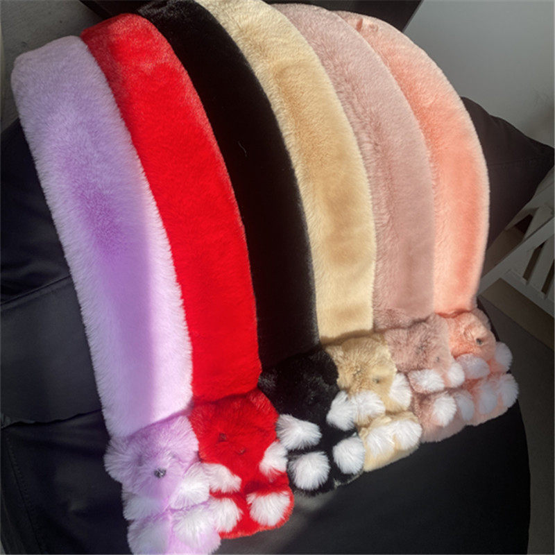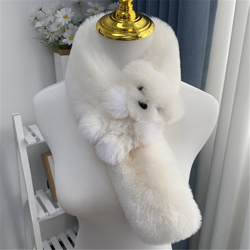 韩版 加厚保暖仿獭兔毛皮草亲子可爱双面绒儿童围脖 小熊围巾女冬季