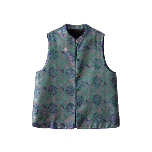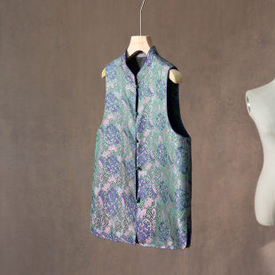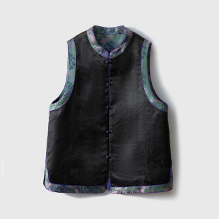 一丝牵双面穿香云纱龟裂纹真丝宋锦马甲新中式 立领马夹100%桑蚕丝