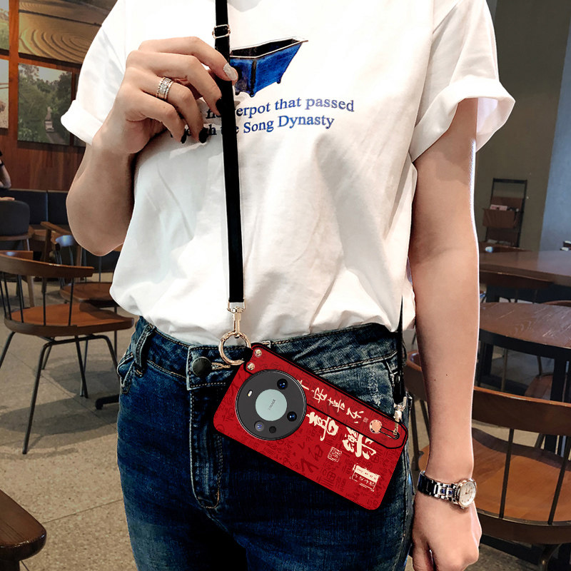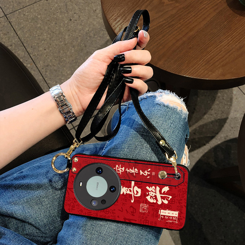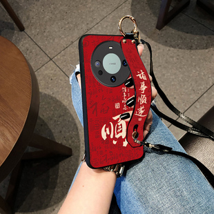 华为Mate80promax手机壳60pro mate70air斜挎挂绳40e防摔mate30RS男女喜乐顺20X皮质感9 保护套mate50腕带款