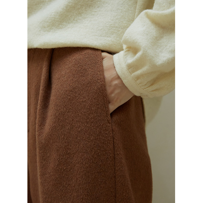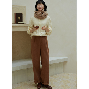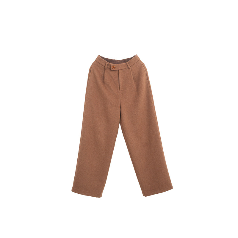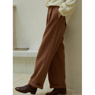 直筒裤 忘城N597座 羊毛混纺双层复古红棕色保暖羊毛裤 秋冬新款 枫