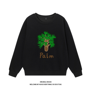 CHRY STUDIO小众潮牌涂鸦棕榈树印花圆领卫衣设计感休闲情侣同款