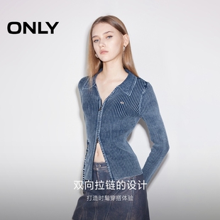 针织衫 开衫 女 做旧水洗V领正肩修身 ONLY奥莱2025秋冬新款