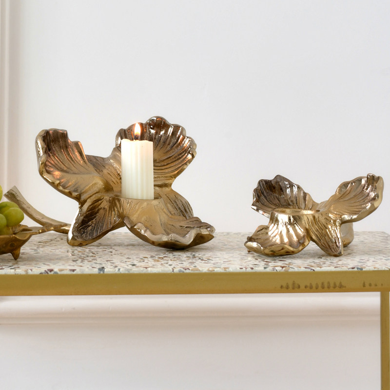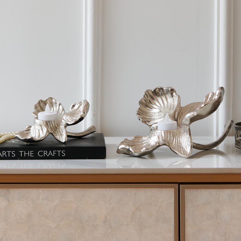 印度进口金银色花型铝制烛台摆件家居客厅餐桌样板间蜡烛台装 饰品
