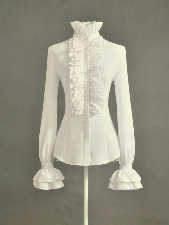 荷叶边宫廷风上衣修身 女保暖打底衫 衬衣 黑色加绒衬衫 2025秋冬新款