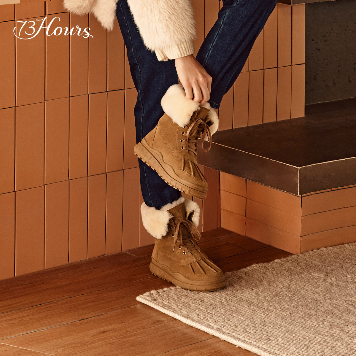 雪地靴毛毛鞋 骆驼x奈娃联名勃肯鞋 加绒保暖厚底时尚 新款 2025冬季