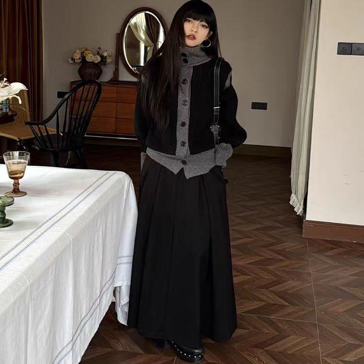 2024秋冬大码 毛衣外套女 胖MM复古慵懒风设计感撞色加厚针织开衫
