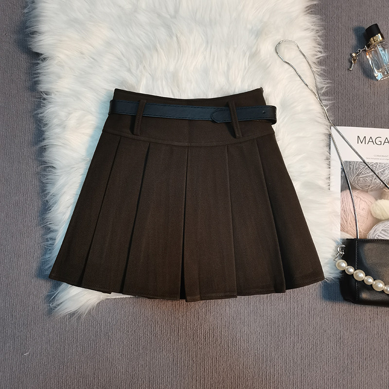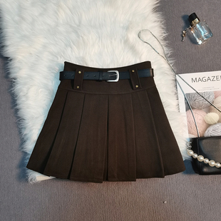 pusumede低腰毛呢半身裙女秋冬设计感裙子防走光裤 裙百搭a字短裙