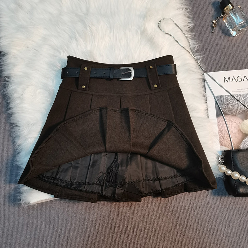 百褶半身裙女秋冬高腰a字裙设计感裙子 中长款 pusumede 韩女法则