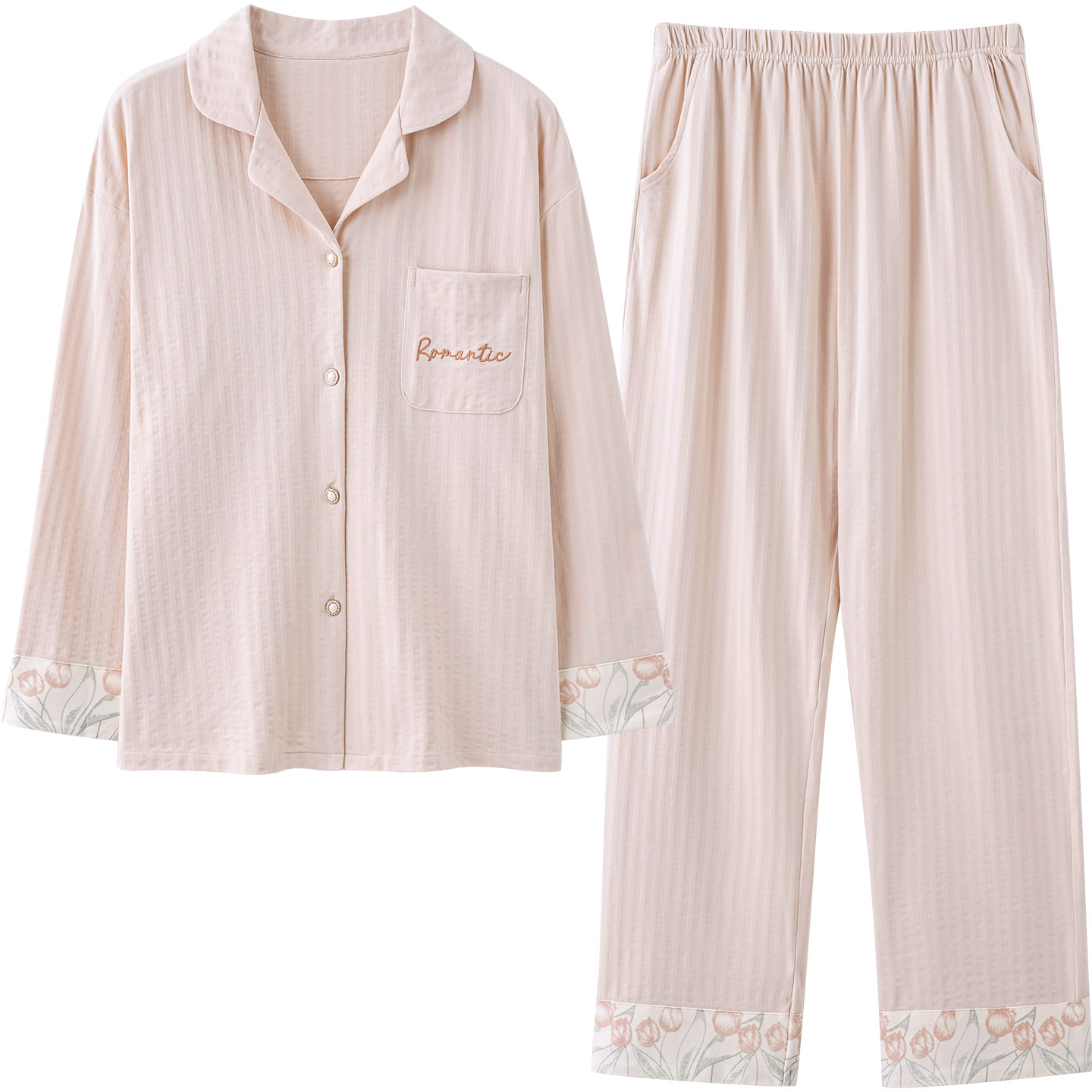 女款 家居服秋季 开衫 宽松大码 芬腾婴儿棉睡衣女春秋款 套装 棉质长袖