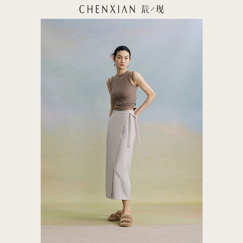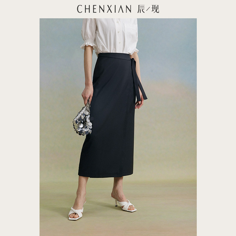 高级感高腰直筒半身裙系带包臀长裙 优雅通勤一片式 到手199元