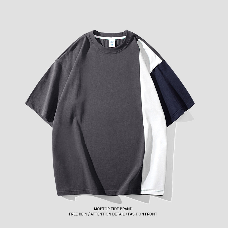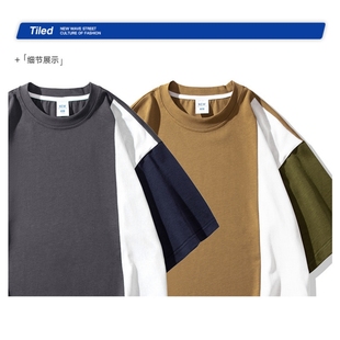 WHXS短袖 潮流纯棉oversize潮牌拼色上衣 t恤男生休闲宽松拼接时尚