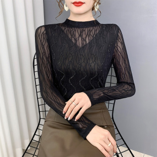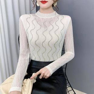 春季 上衣洋气T恤小衫 内搭打底衫 气质网纱长袖 女装 2026年新款