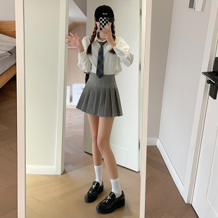 灰色百褶裙女半身裙夏季 高腰小个子jk学院风春秋a字短裙 2026新款
