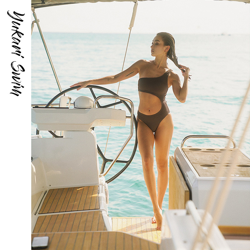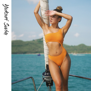 单肩显瘦弹力高级感性感度假泳装 Yukari swim连体泳衣女不对称款